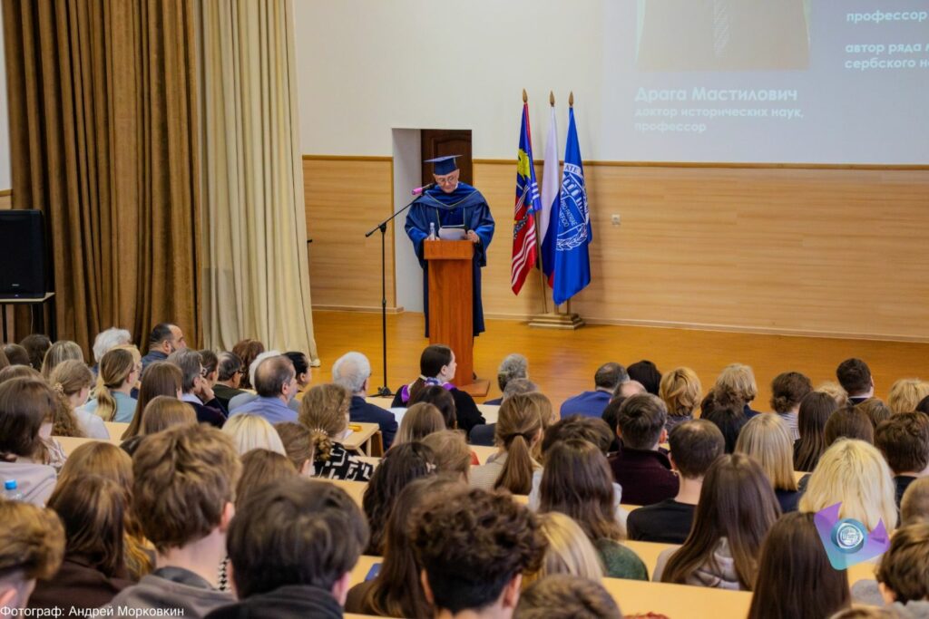 Након церемоније додјељивања признања, професор Мастиловић је одржао предавање студентима друштвено˗хуманистичких наука на тему „Геноцид над Србима у Независној Држави Хрватској“, у оквиру којег је говорио о историјским околностима геноцида проведеног над српским народом током Другог свјетског рата, те значају очувања културе памћења и научног приступа изучавању ове теме.